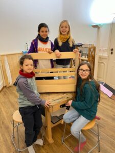 Annes Papa baut mit den 4ties der Libellen einen Teppichständer. Als erstes wurden alle Teile des bestehenden Teppichständers der Libellenklasse