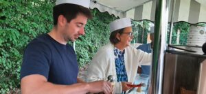 Als Dankeschön für unser fleißiges Jäten spendierte der Schulträgerverein einen Eiswagen für die Kinder der Volksschule. Heike, Christopher und Enzo