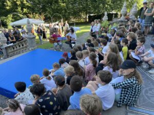 Da sich die Galluskirche aktuell im Umbau befindet, beschlossen wir den Schulschlussgottesdienst als Segensfeier vor die Villa zu verlegen. Die