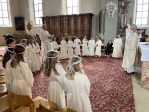 Einen tollen Vorstellungsgottesdienst feierten die Erstkommunionskinder im Januar in der Pfarrkirche St. Gallus. Mit der Unterstützung von Diakon Gerold wurden