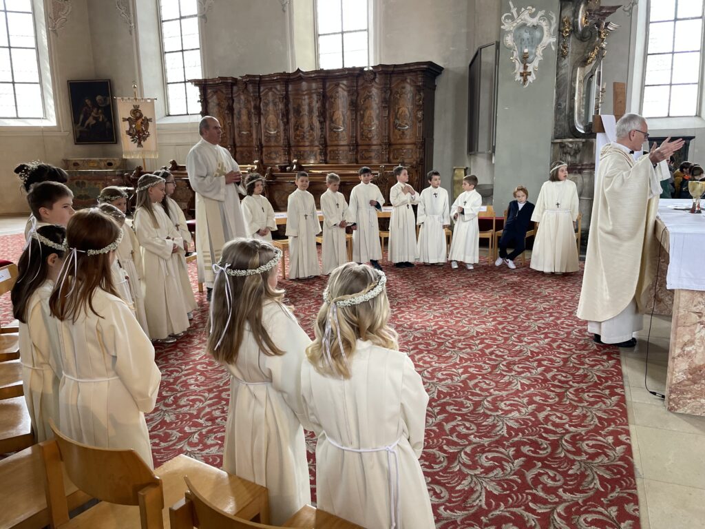 Gemein­sam mit Alba, Anto­nia, Ele­na, Emelie, Fabi­an, Fer­di­nand, Gre­ta, Hannes, Lina, Lorenz, Luis, Math­ea, Math­ea, Mathil­da, Pia, Raphael, Raphael, Samuel und Sophia durften wir am weißen Sam­stag ein wun­der­volles Fest feiern. In ein­er liebevoll deko­ri­erten Kirche, mit dem Marien­berg­chor an ihrer Seite und vie­len großen und kleinen Helfer­lein, empfin­gen die Kinder zum ersten Mal die Hostie. Danke an alle, die diese Feier so unvergesslich gemacht haben!