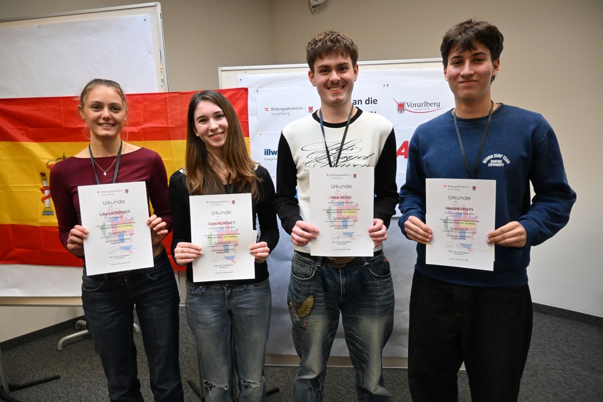 Am 26. Feb­ru­ar fand nach Englisch und Franzö­sisch auch der lan­desweite Fremd­sprachen­wet­tbe­werb in Spanisch im WIFI Dorn­birn statt. Louisa Tripp und Lina Lat­er­n­er aus der 4Hb nah­men ver­trat­en die HLW Marien­berg bei diesem Sprach­wet­tbe­werb und zeigten ihre aus­geze­ich­neten Spanisch-Ken­nt­nisse. Als einzige Schü­lerin­nen aus ein­er BHS mussten sie gegen zahlre­iche Schüler:innen aus ver­schiede­nen Gym­nasien aus Vorarl­berg antreten und kon­nten sich gut behaupten.